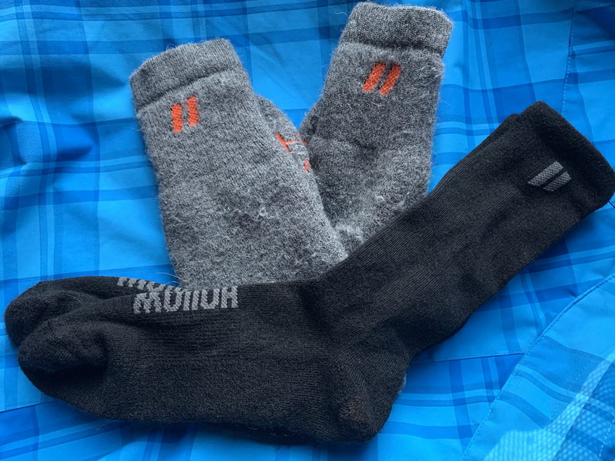 保温性がメリノウールより優れているので、寒い時期や、悪天候で大活躍のアルパカウールの靴下。色々あるのですが、この「Hollow」のが長さや厚さがちょうどいいので好きです。