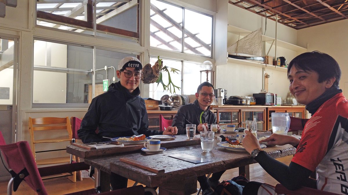 イベント後半になると風はかなりのものになり、残念ながら一部コースを短縮することに。内陸部のコース変更により、海岸線の驚くほどの風をなんとかやり過ごしながらもゴール地点のファミリーオ館山へとたどり着く。自転車を停めて完走の手続きをし、手渡されたコーヒーとお菓子を口にする。するとあちこちで口々に「いやーすごい風だったね!」と話しながらもう笑顔になっているのだから、やっぱりサイクリストはタフだ!