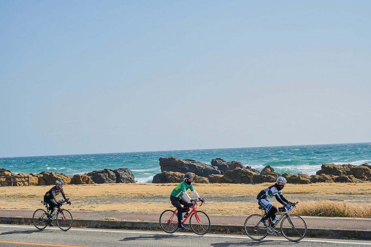 それぞれのコースを走り、千葉房総を堪能する参加者のみなさん。アップダウンの多い内陸部を走っていく途中でも笑顔があふれる。それは複数人で走る楽しさを感じるとともに、房総の持つ自然の景色がサイクリストの目に優しいからかもしれない。ただ東側の海岸線に近づくにつれ、ますます風が強くなっていく……!