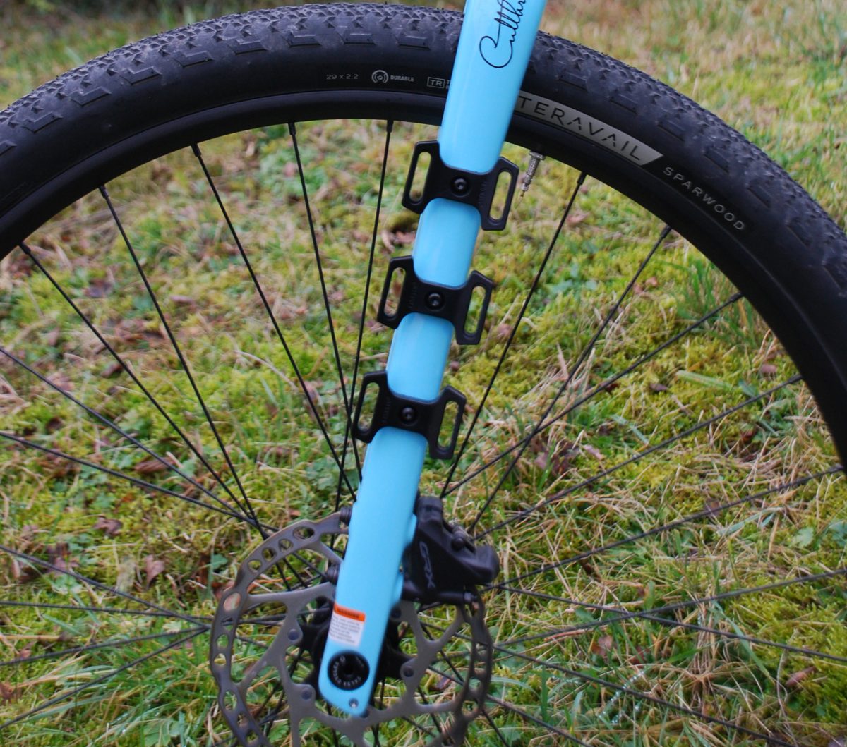 いろいろなものをまとめたり、縛ることが可能なドイツ生まれの万能ストラップ。バイクパッキングに限らずさまざまな用途に使用可能で、ゴムのような伸縮性はなく、確実にホールドし振動による緩みを抑えます。取り付けも簡単で、片手でも容易に行えます。耐紫外線、耐カット性能、耐寒性、耐熱性を備え、汚れても洗って繰り返し使用可能。