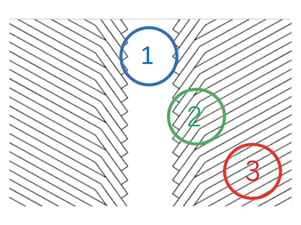 より曲がりやすくするヘリンボーン パターン