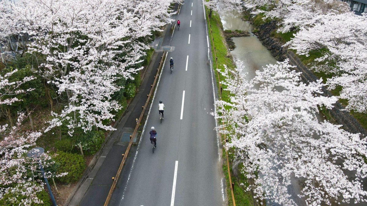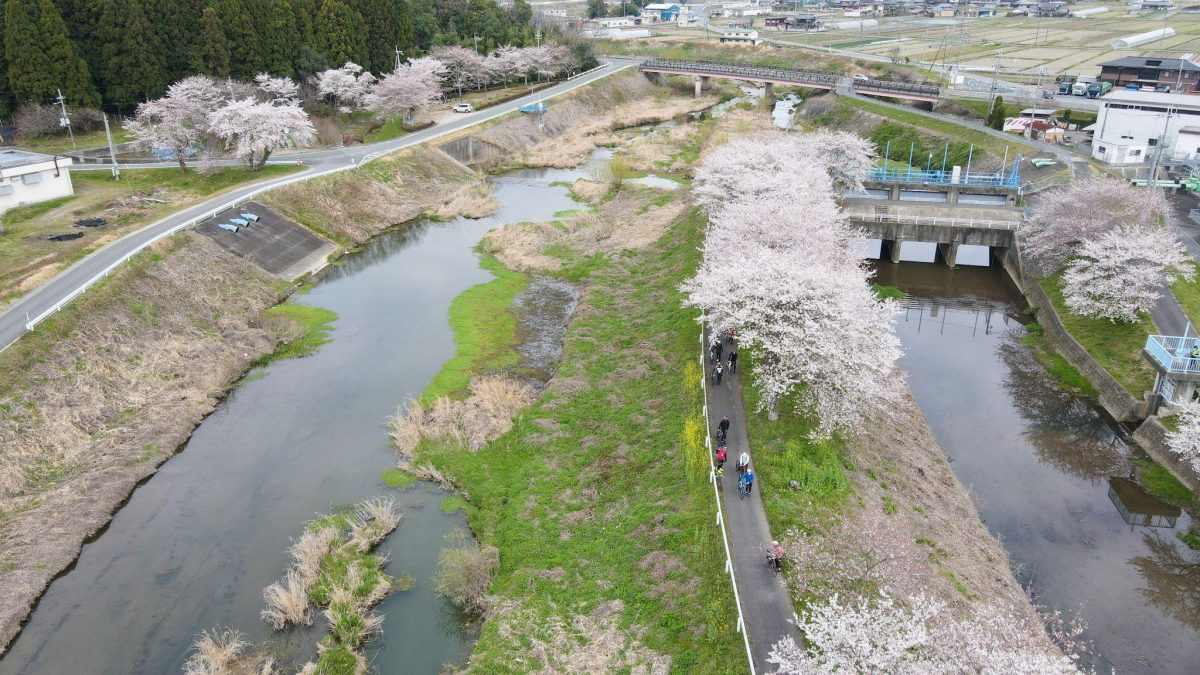 スタートしてすぐに高谷川の桜並木の下を走る。お花見ライドと銘打っているだけに出だしから桜並木に歓迎されるというぜいたくさだ。