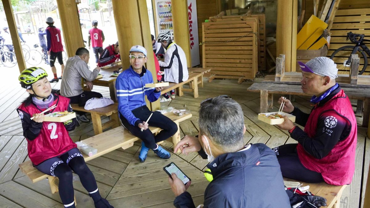 午後4時過ぎ。最終グループがゴール。走行距離67km、獲得標高は800mのルートに特製お花見弁当と老舗の和菓子を組み合わせたお花見ライド、花より団子というよりもむしろ、花も団子も、おまけにサイクリングも。という欲張りなライドを参加者全員が楽しんだ。