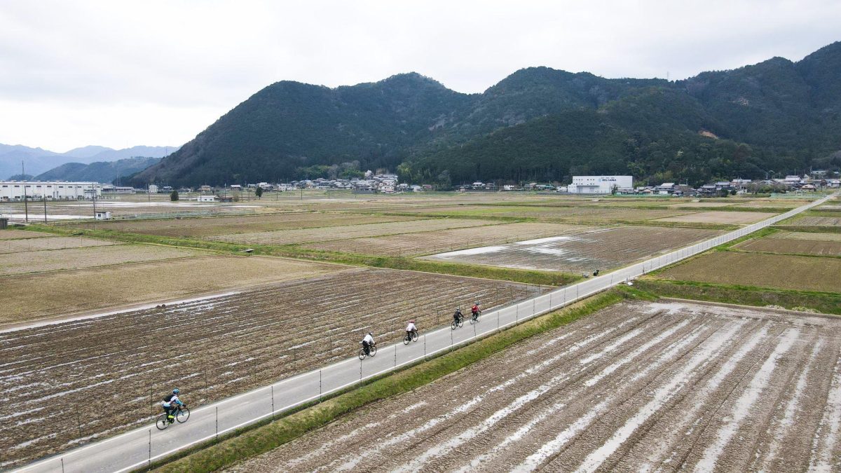 桜並木を抜けると丹波ならではの田畑が広がるのどかな田園風景を駆け抜けていく。太陽も出てきて気分は爽快。地元丹波サイクリング協会のメンバーが引いたルートは裏道を駆使しているため行き交う車も少なく、軽快にペダリングしていく。初心者にも安心の楽しめるサイクリングルートだ。