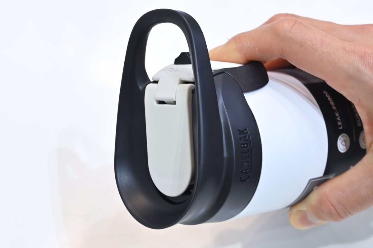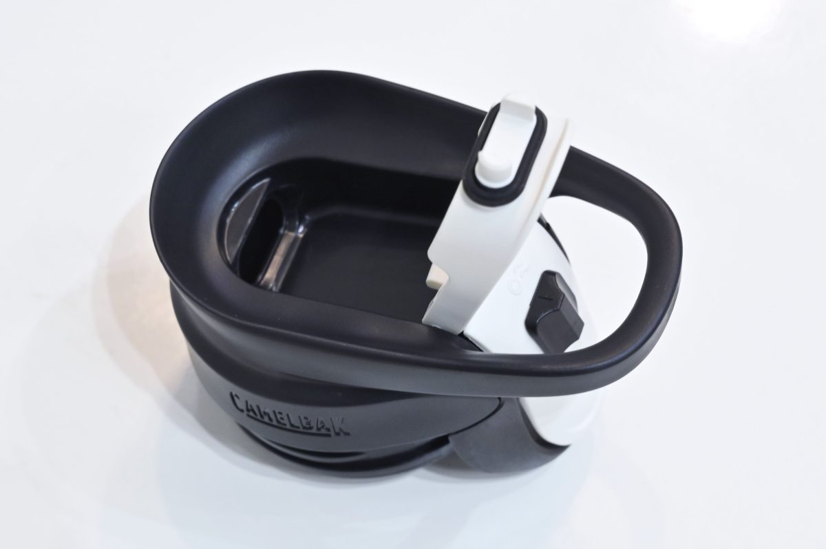 その特徴はキャップにある。側方にあるレバーをプッシュするだけで開口部が開く。キャップ自体を回したり外したりする必要がないため、すべての動作が片手で行え、スマートに飲み物を補給できる。