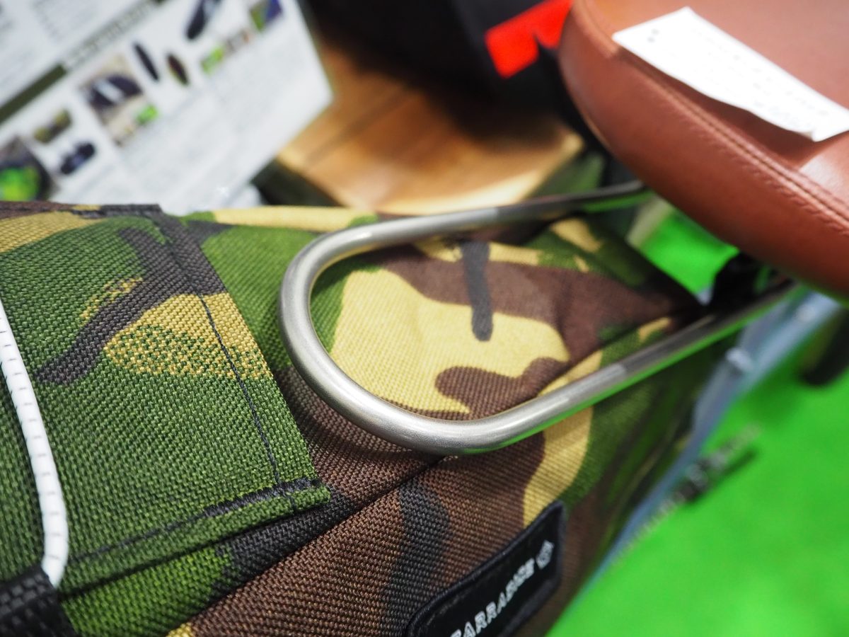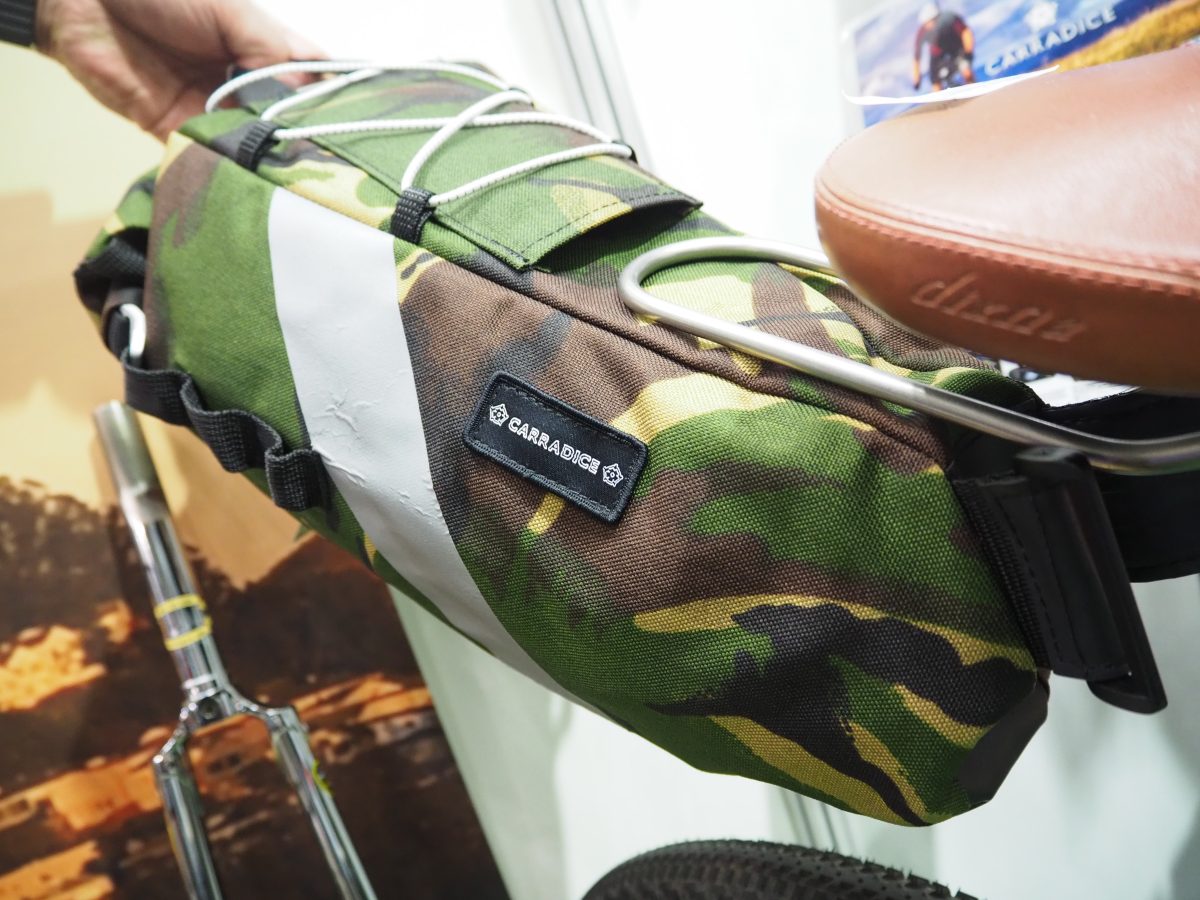 サイクルモード東京2022で見つけた新製品から最新アイテムを紹介。1932年創業のイギリスのバッグメーカー「キャラダイス」が製作したNEWシートバッグは、それまでの伝統的なモデルとも、他社の一般的なモデルとも異なる個性派だ。