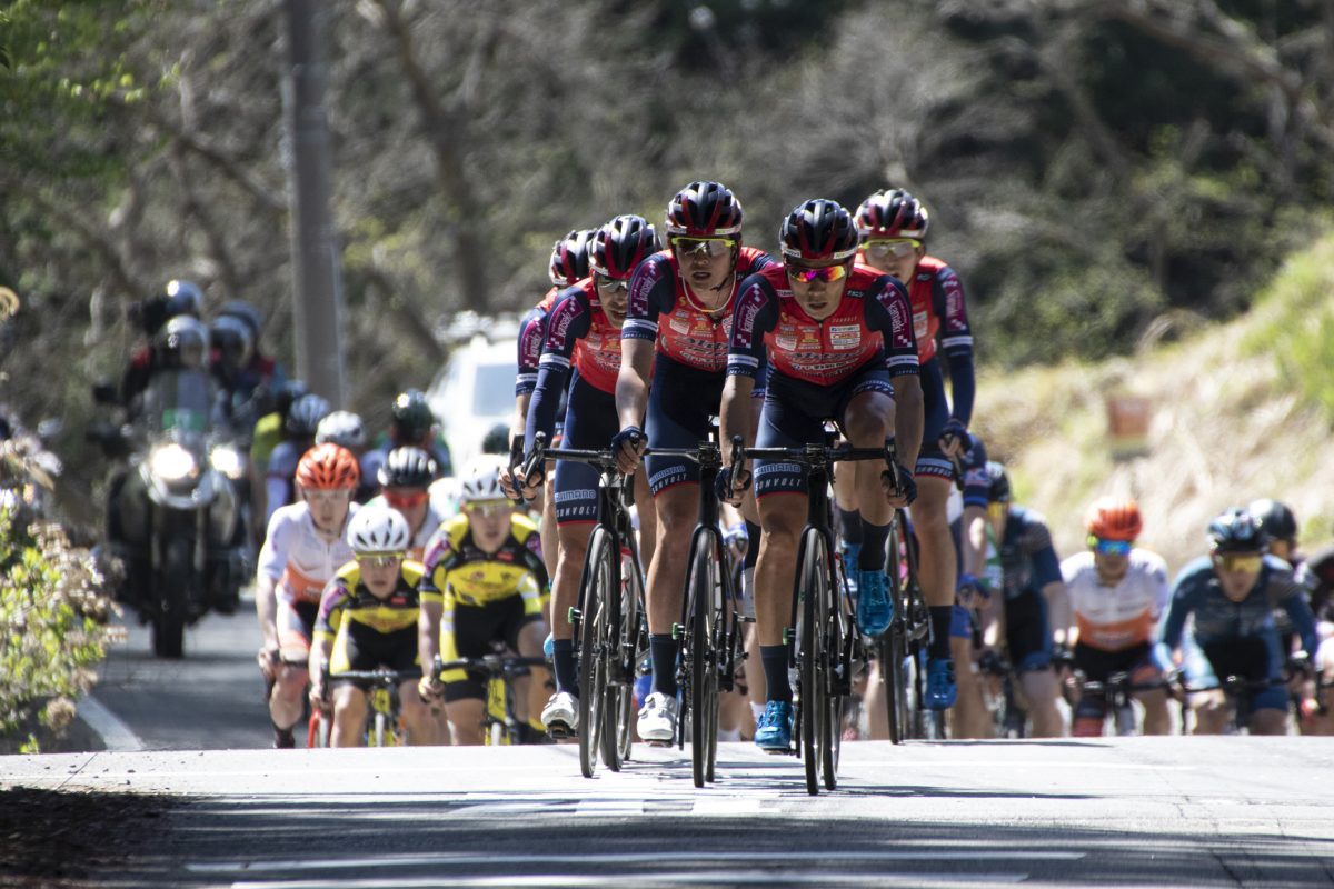 ツアー・オブ・タイランドで総合2位となった好調の小石のアタックに増田、小野寺が反応し、畑中勇介(キナンレーシングチーム)、渡邊諒馬(VC福岡)が続く。そして、アタックの応酬が繰り返される中、ここで増田と小野寺の2人を擁する宇都宮ブリッツェンが波状攻撃を仕掛ける。