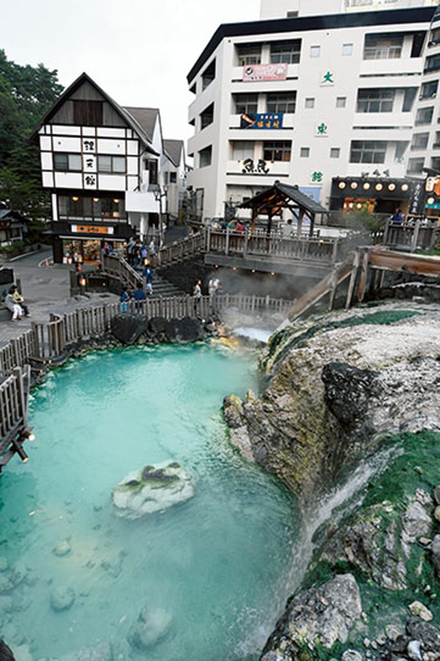 日本を代表する温泉地、草津。土地の温泉に寄ることも峠の楽しみかたのひとつ