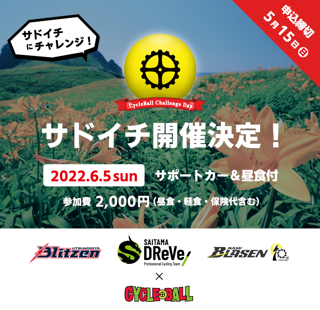 JCL 所属のプロチーム「宇都宮ブリッツェン」「那須ブラーゼン」「さいたまディレーブ」の選手とともにサイクルボールサドイチの完走を目指すスペシャルイベントです。