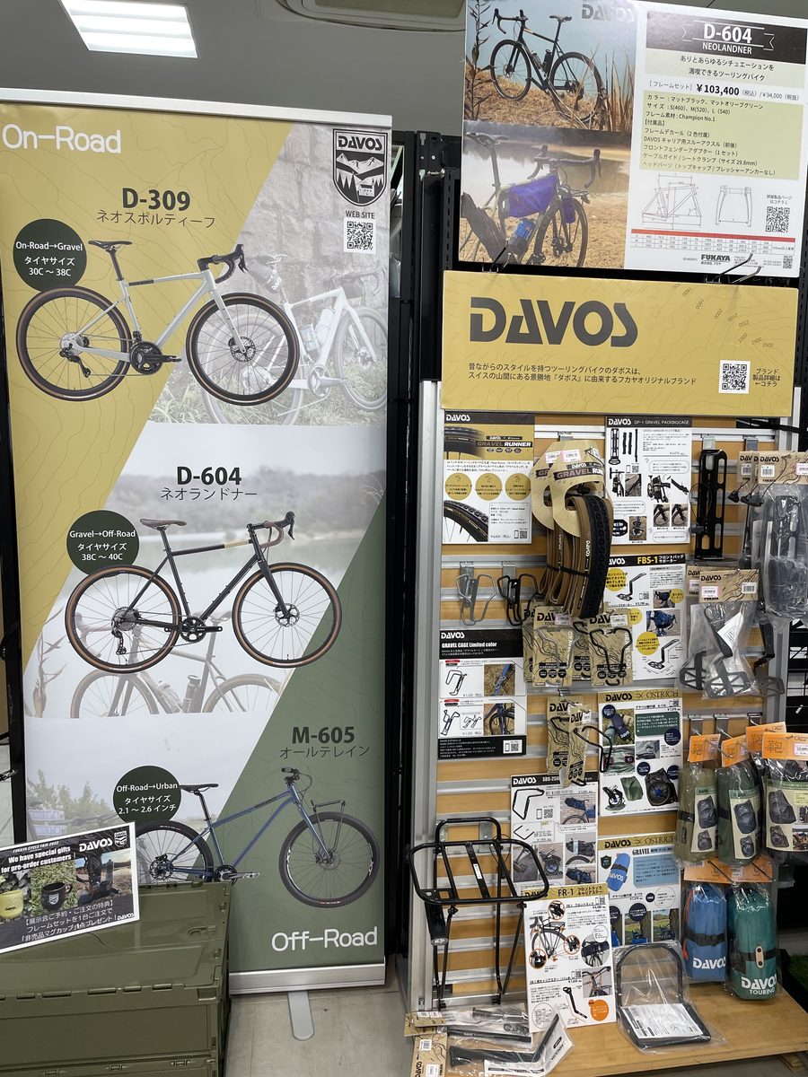 ポップアップコーナーでは、『DAVOS(ダボス)』のグラベルバイクの中でも、ツーリングに特化した『D604ネオランドナー(フレームセット)』の完成車イメージと、フルパッキングした状態での見本車体を展示。