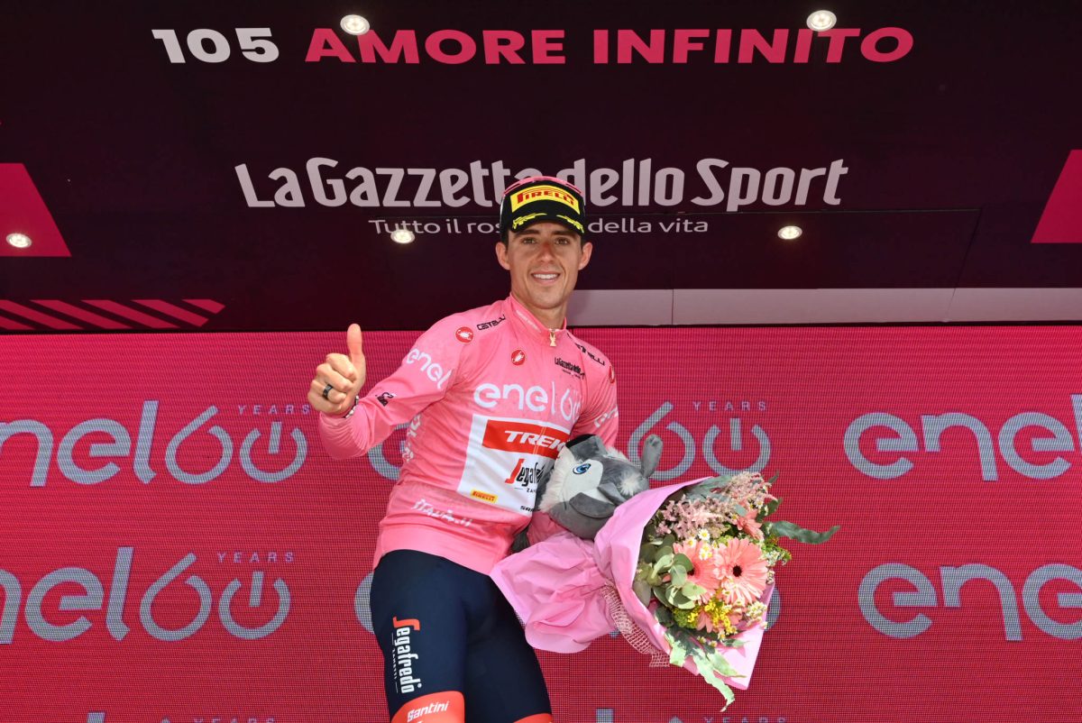 明日は大事な1日だ。何か仕掛けようと考えている個人総合上位の選手がいても不思議ではない。ジロをスタートしたときは、総合よりもステージ優勝にフォーカスしていた。それだけに、マリアローザを着ている今は夢のようで、いまだに信じられない」