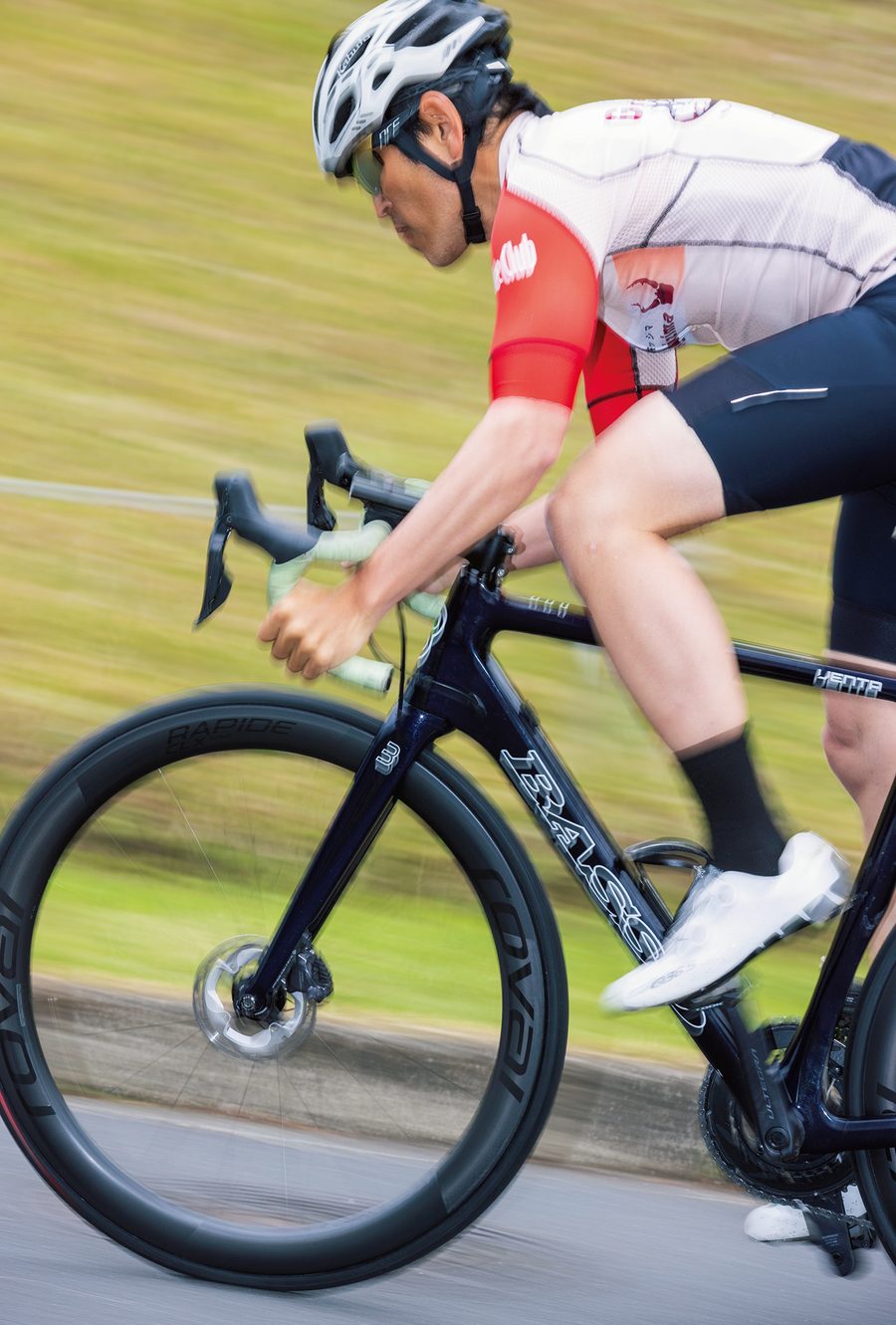 ラピーデは踏み込んだときに、クランク位置3時から4時にかけて反応があり、よりパワーが出しやすいホイールだ。群馬CSCのような高速でアップダウンを繰り返すコースではより有利な武器となりそうだ。いっぽうアルピニストは踏み出しがずば抜けて軽く、感動すら覚える。上りではペダル回転数を上げないといけないくらい回るため、スカッと踏み抜けてしまわないように、1時くらいで早めに踏みやめて力を抜く、高回転ペダリングをするのがオススメ。また、横風の抜けがよく、横風が不安なロングライドなどでは直進安定性のよさが生きる。