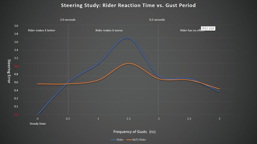 さまざまな研究から速さに影響を与えるのが0.5秒以上の突風であることが判明。0.5秒未満ではライダーが反応できず、0.5〜2秒の突風で修正動作を行うためにブレが生じる。そこでこの時間枠で最も安定する形状に最適化した。