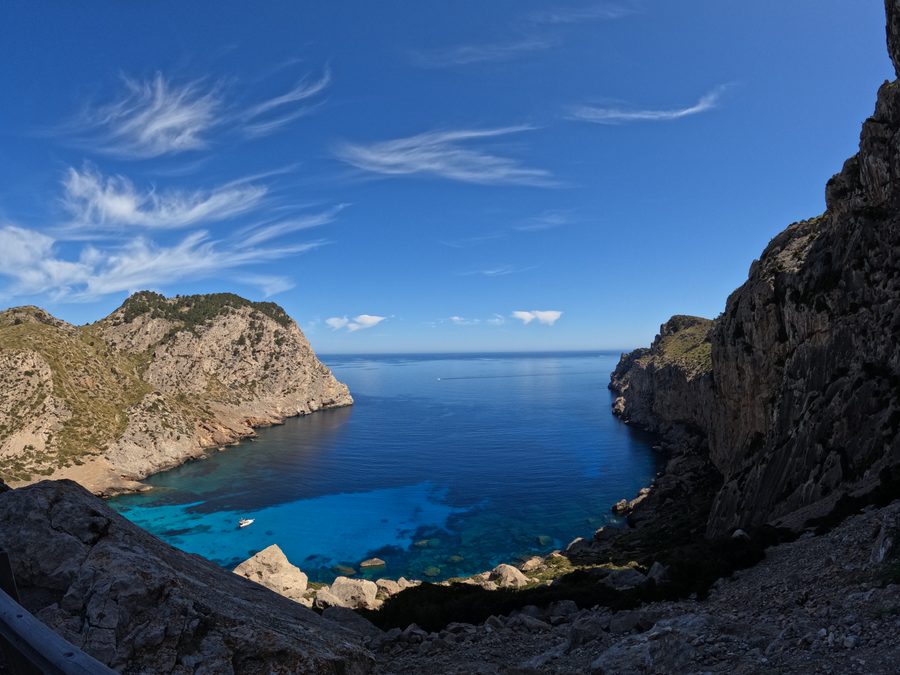 マヨルカでの有名サイクリングスポットの大半を走った中で一番のお気に入りは、サ・カロブラと呼ばれる上り。マヨルカで最高のクライムというだけでなく、世界中のベスト・クライムの一つ、と見聞きすることも珍しくないほど有名で、26つものヘアピンコーナー、270度のカーブもある、カテゴリー1クライムです。このクライムに挑戦するには、まず一番下まで下らないといけません。下りが始まる地点に行くには、メジャーなクライムを経ていかなければならないのですが(選択肢は、始める場所によりいくつかある)、私はコル・デ・フェメニアのカテゴリー2クライム、そしてマヨルカ島最高峰プイグ・マジョール山を上って行きました。