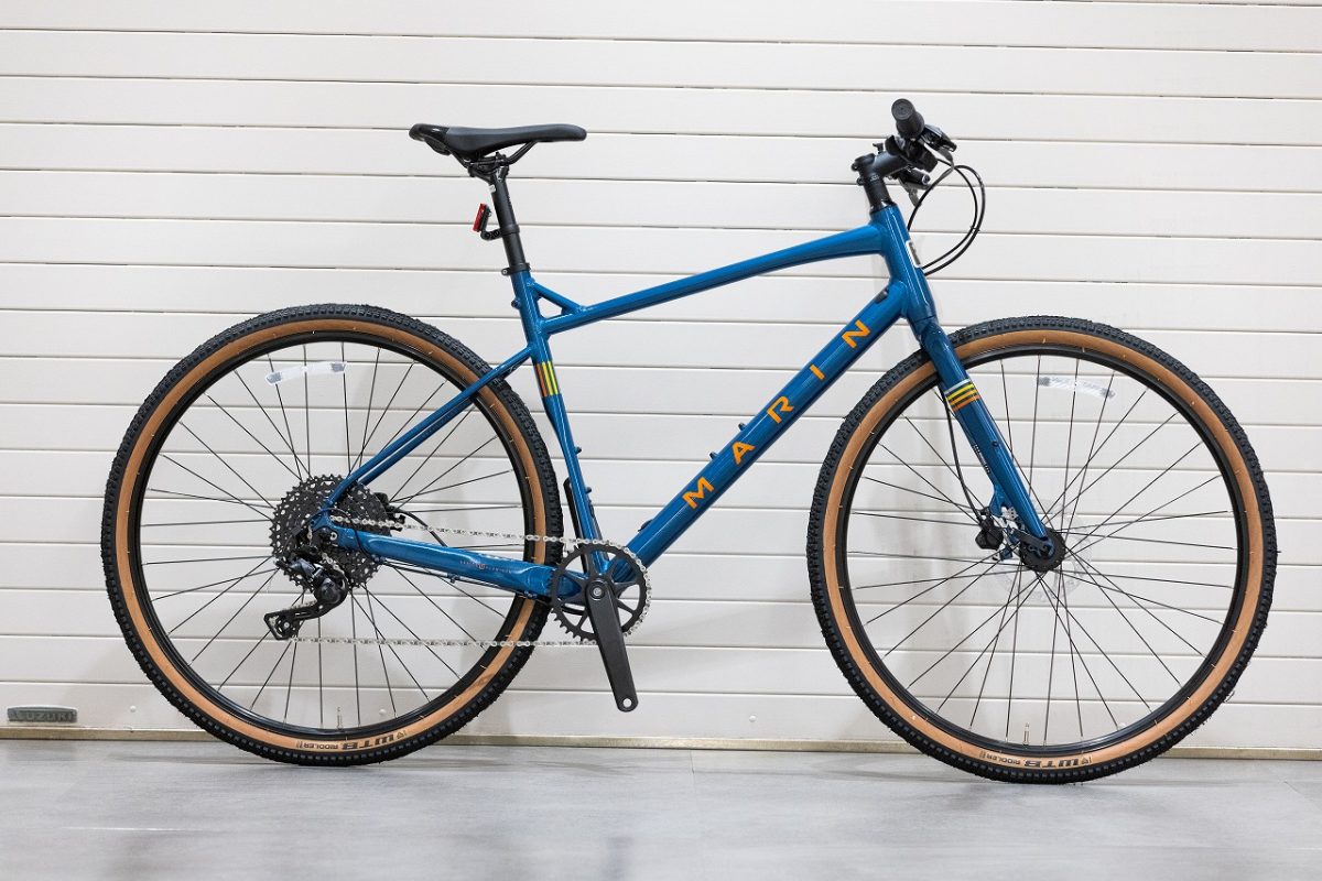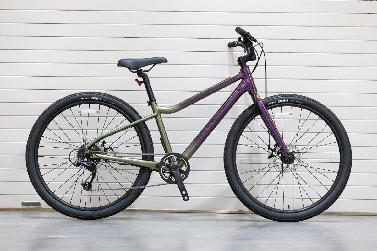 最後にオマケとして紹介するのは「グラベルクロス」ではなく、街乗り用の「クロスバイク」。650B×47Cという太いタイヤを履いているものの、あくまで街中での快適な走行に特化したもの。ある意味グラベルクロスとは別の方向に進化したクロスバイクといえる。ディスクブレーキ採用やフロントシングルという点ではグラベルクロスと同様だが、ハンドルバーがアップライトで体に近い、フレームがまたぎやすいなど、街中走行での使いやすさが光る。