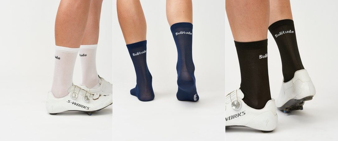 ジャージ、ビブの他に、超薄手で優れた通気性・速乾性とフィット感を併せ持つソリテュードソックスも発売された。
