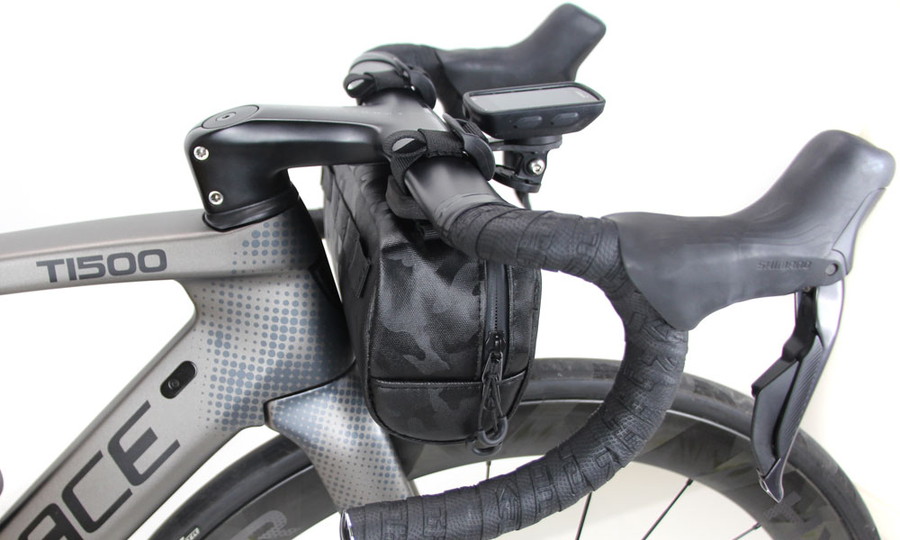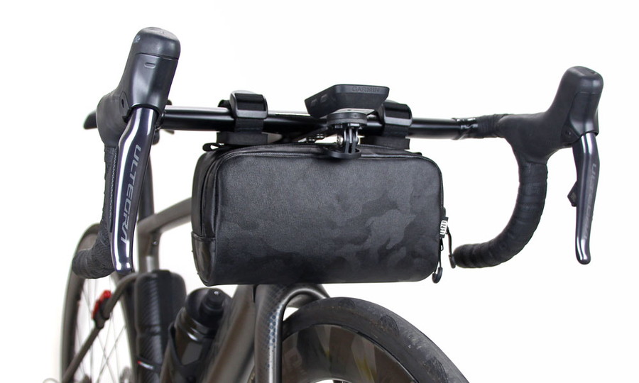 ハンドル低めのロードバイクでも、前輪に当たらず取り付けられるコンパクトサイズ。スクエアタイプのコンパクトなフロントバッグ。ロードバイク、グラベルバイクにオススメ。