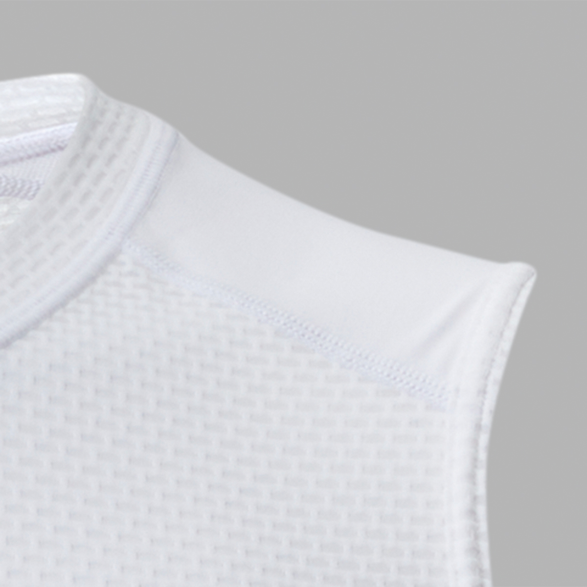 「クールフィットドライ ノースリーブ」は、汗を素早く吸収してベトつきや汗冷えしにくいドライな着心地。伸縮性に優れた柔らかな素材が、乗車時のあらゆる姿勢にフィット。肩部分に薄手の日焼け防止素材を配置して、ジャージを通り抜けた紫外線もブロックします。