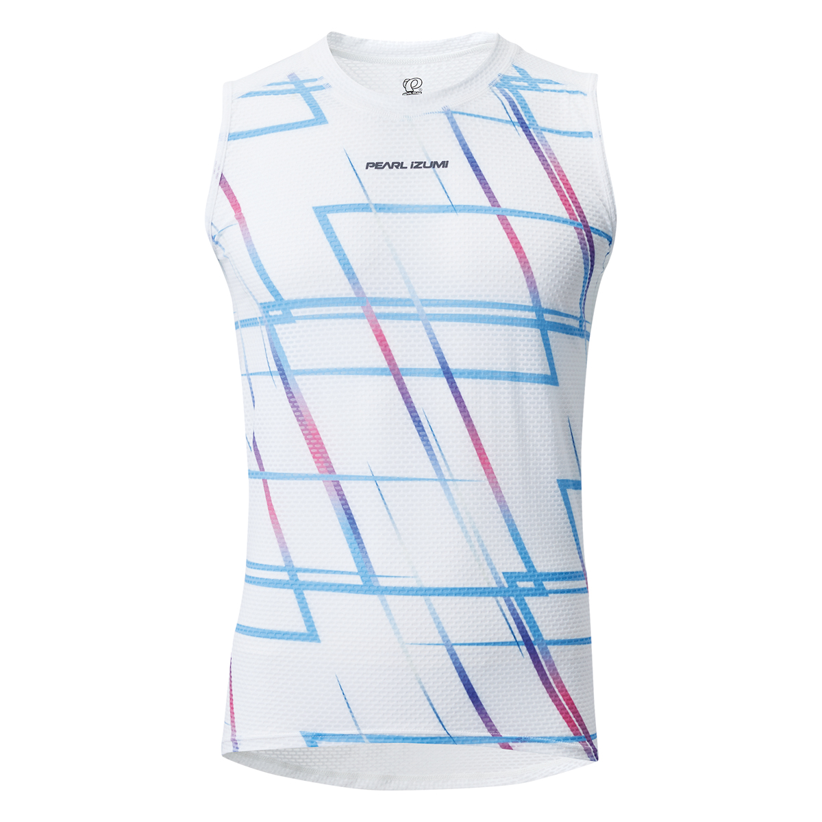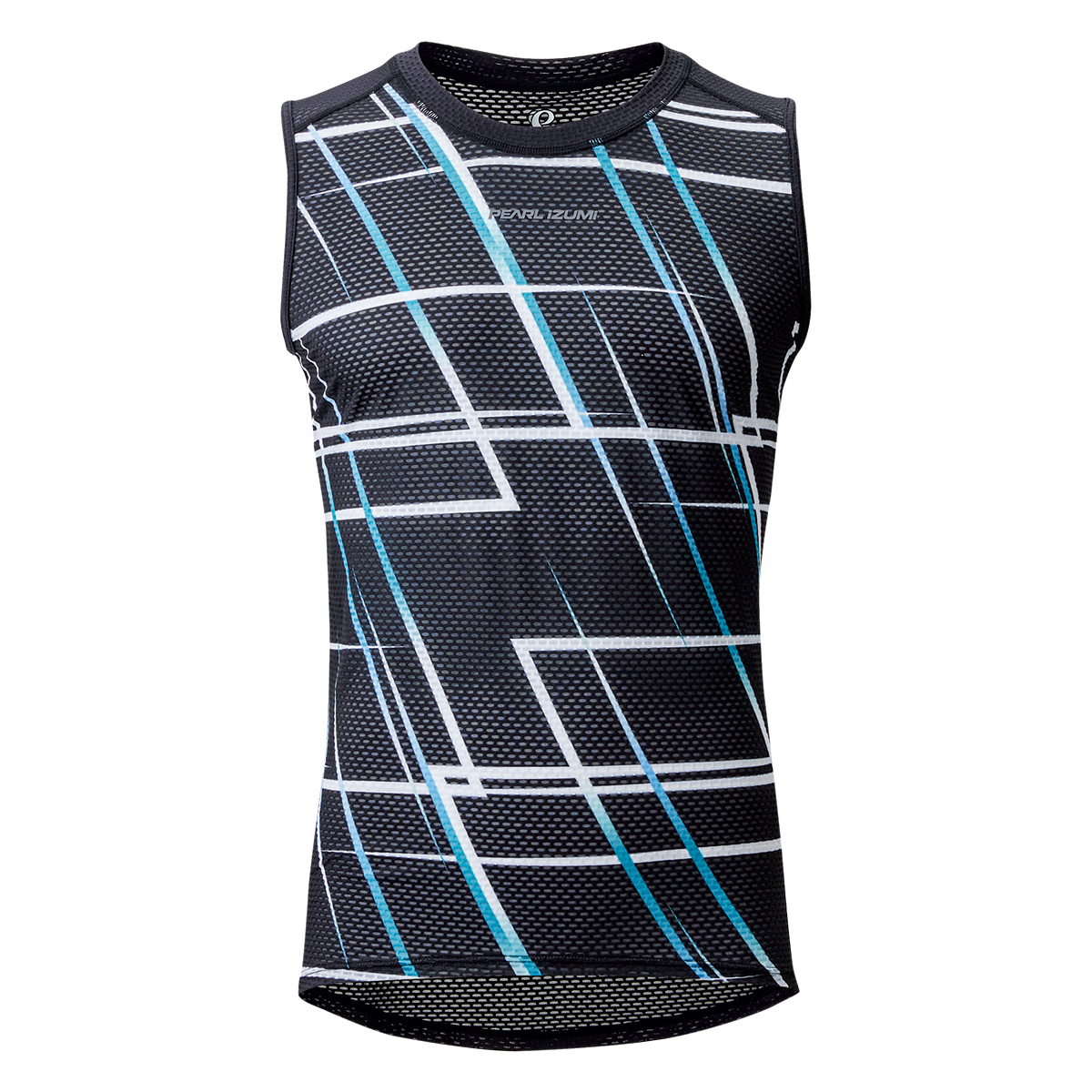 「クールフィットドライ ノースリーブ チーム」は、前身頃にシャープなグラフィック柄をプリントした“見せるアンダー”。汗を素早く吸収してベトつきや汗冷えしにくいドライな着心地です。