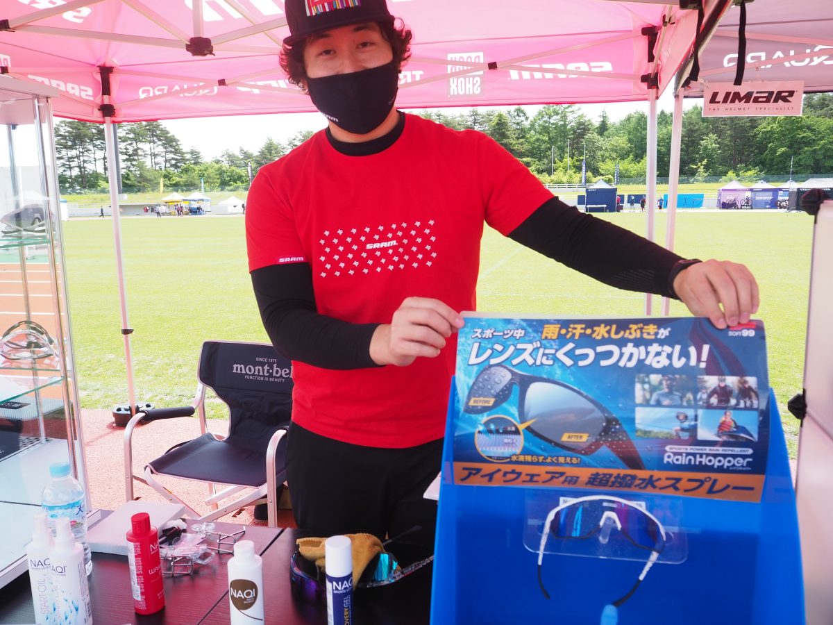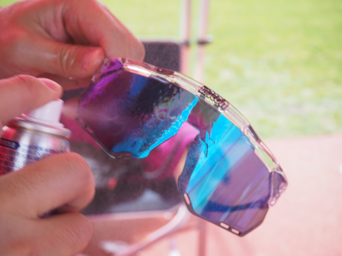 富士ヒル2022EXPOのブランドブースで見かけたアイテムを編集部の浜田が紹介。今回は自転車用アイウエアに塗布するだけで、水分をすさまじく弾くスプレー式コーティング剤を紹介する。
