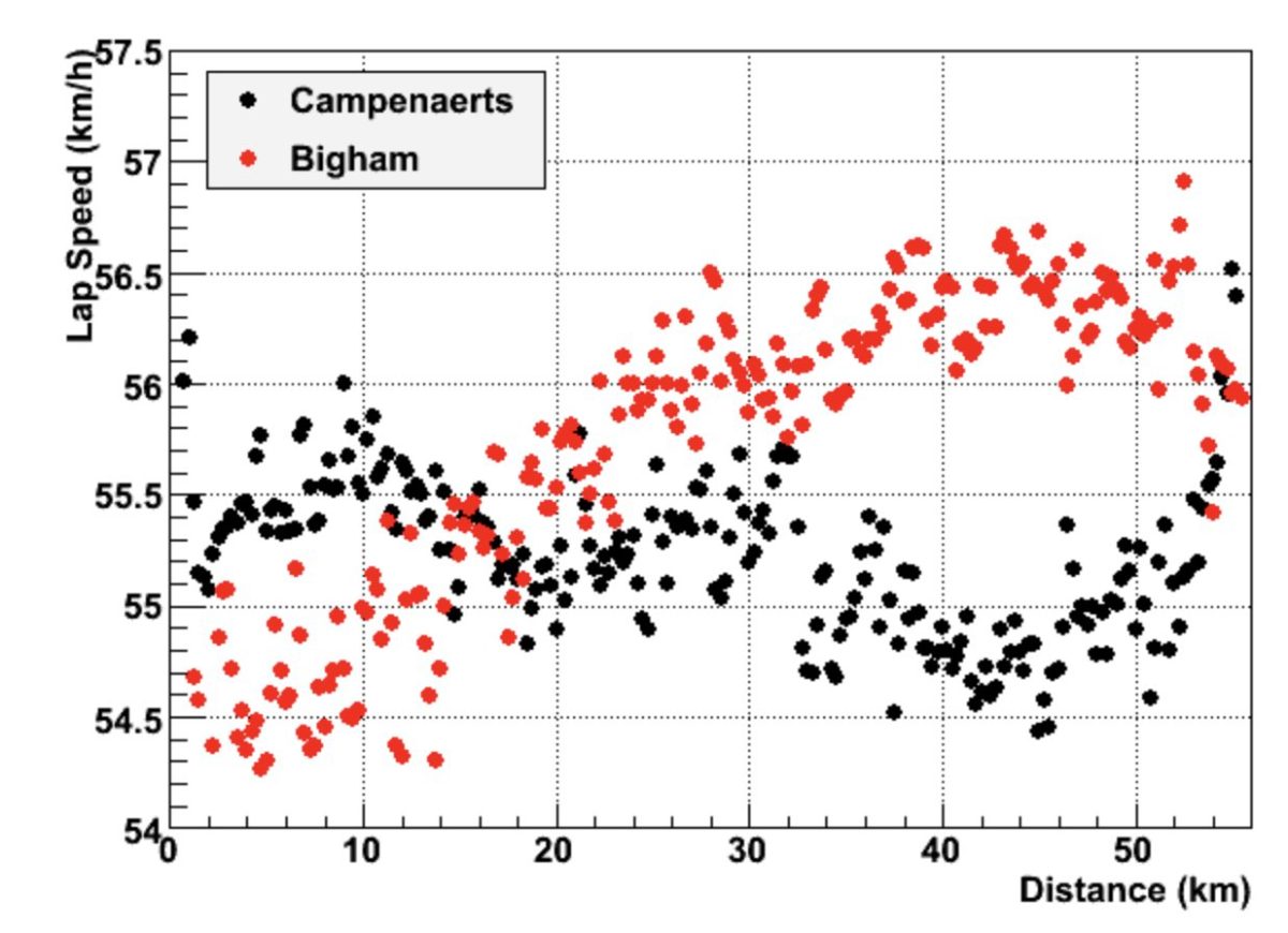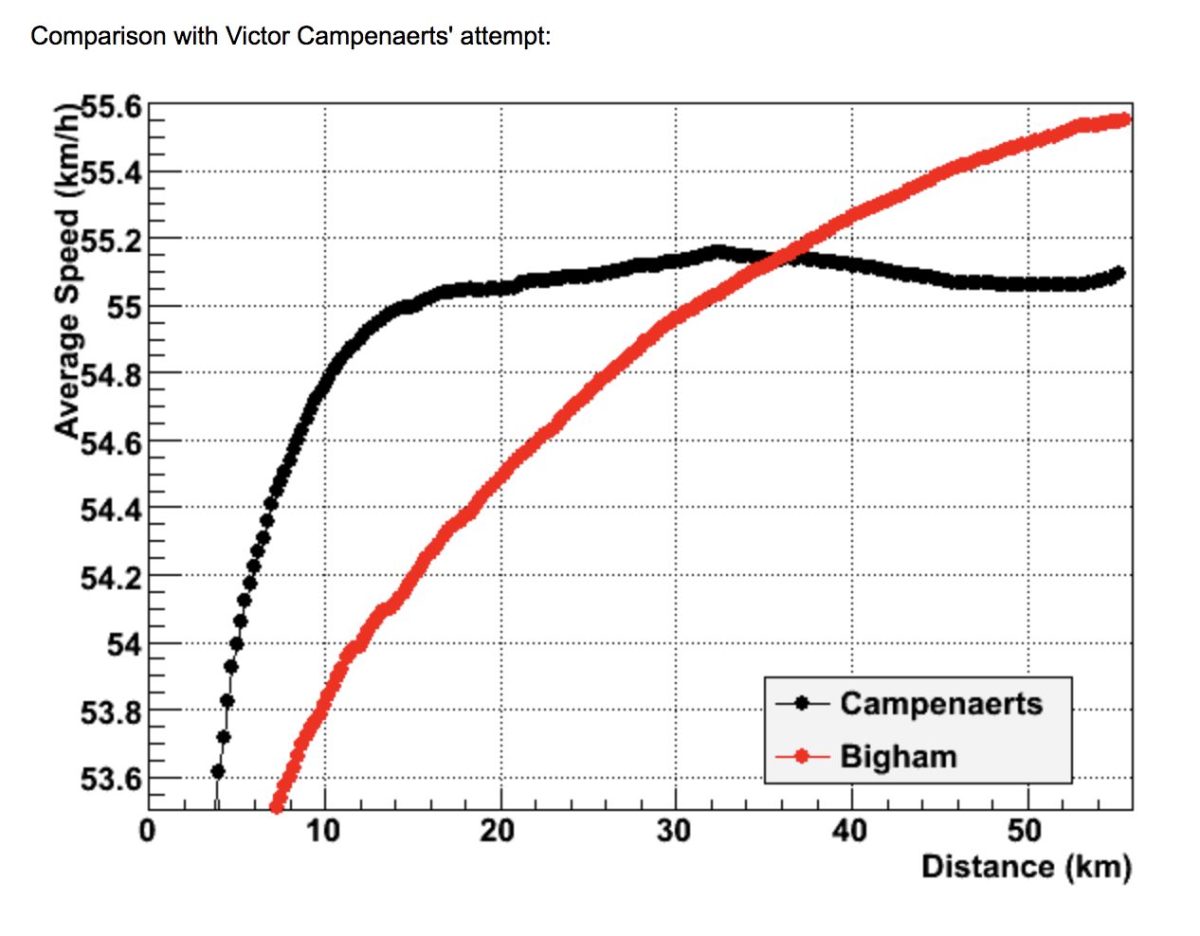 そのときのラップタイムとビクター・カンペナールツが樹立した55.089kmのラップタイムを照らし合わせ、記録樹立に必要なラップタイムを計算。
