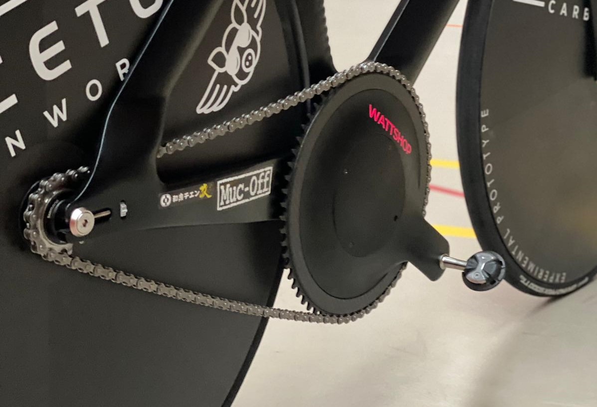 そして駆動抵抗を1Wでも削減するために採用されたチェーンは、日本のイズミ・KAIチェーンだ。ダン自身がロードチェーンとトラックチェーンを比較。挑戦に使用するマックオフの潤滑剤を塗布した上で最も抵抗が低かったのはイズミ・KAIだったという。