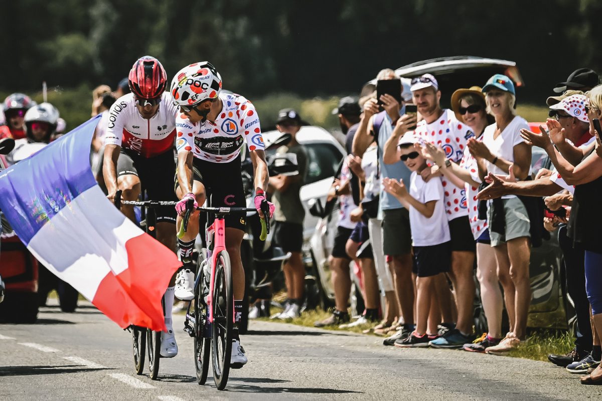2人を容認したメイン集団はペースコントロールを急がなかったこともあり、50km地点では5分以上の差に。タイム差はさらに広がって、フィニッシュまで90kmを残したところでこの日最大の7分15秒差まで広がった。この間に、先頭の2人は山岳ポイントを争ったが、いずれもコルトが先着。ここまで4級山岳でコツコツとポイントを積み重ねているコルトだが、このステージでも山岳賞のマイヨアポワのキープが濃厚な情勢とした。