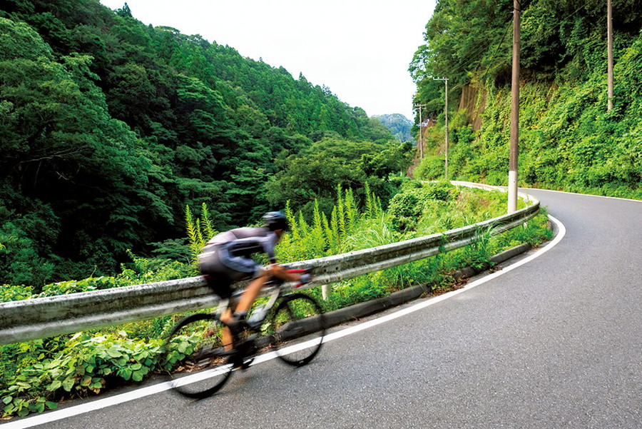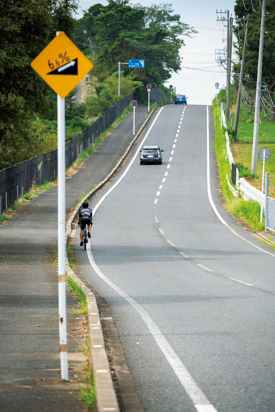 とにかくクルマと信号が少なく、起伏が多い。房総内陸は速くなりたいレーサーにとって望ましい環境がそろっている。本コースは距離58㎞で1100m以上の標高を稼げる