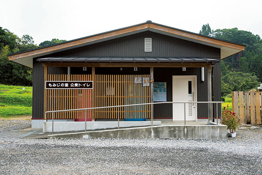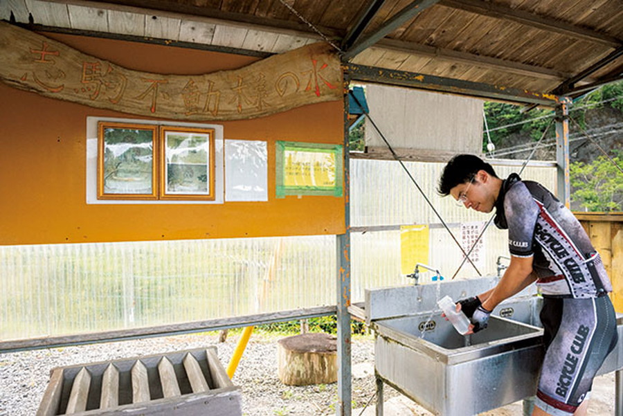 もみじロードの途中にある休憩地点。ボトルに「霊水」を補給しよう。タンクいっぱいに詰める人も。トイレあり。