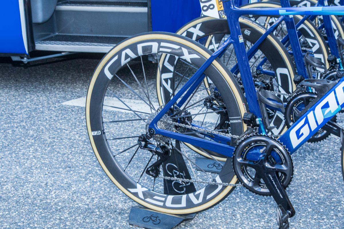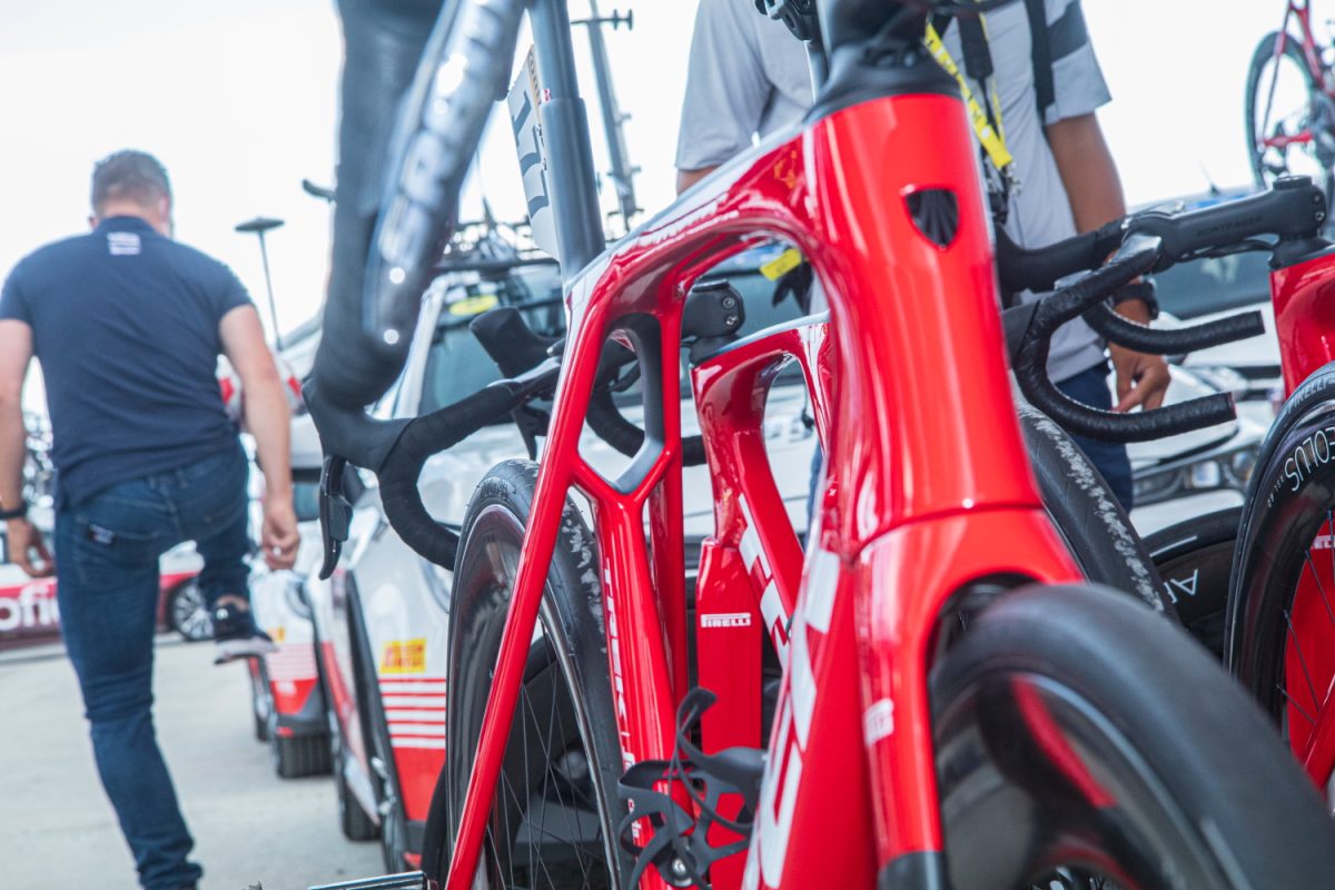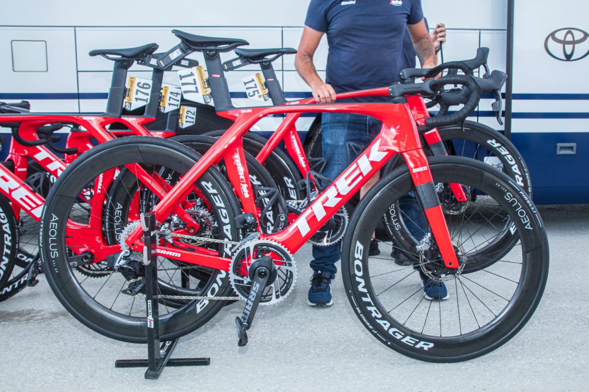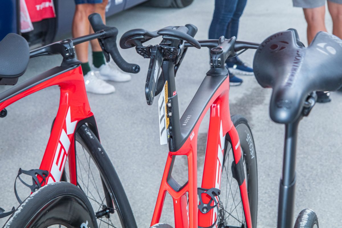 新型マドンにはボントレガー・Aeolus RSL 51カーボンチューブレス対応のホイールセットが付属するが、ピーダスンは第2ステージでリムハイト62mmを採用した。また、各選手にはSRAM・Red ETap AXS 12スピードグループセットが搭載されている。