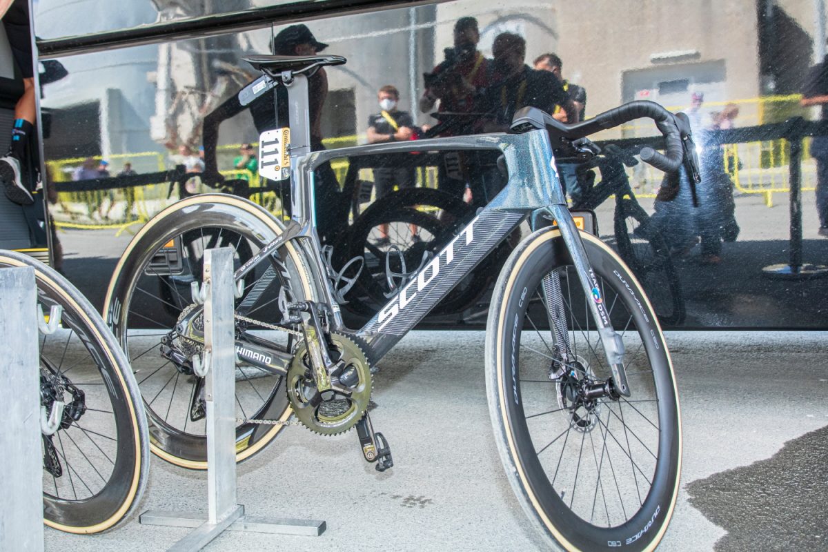 なお、このモデルは平坦ステージでの使用に限られ、山岳ステージでは軽量モデルのTCRに選手たちは跨っている。