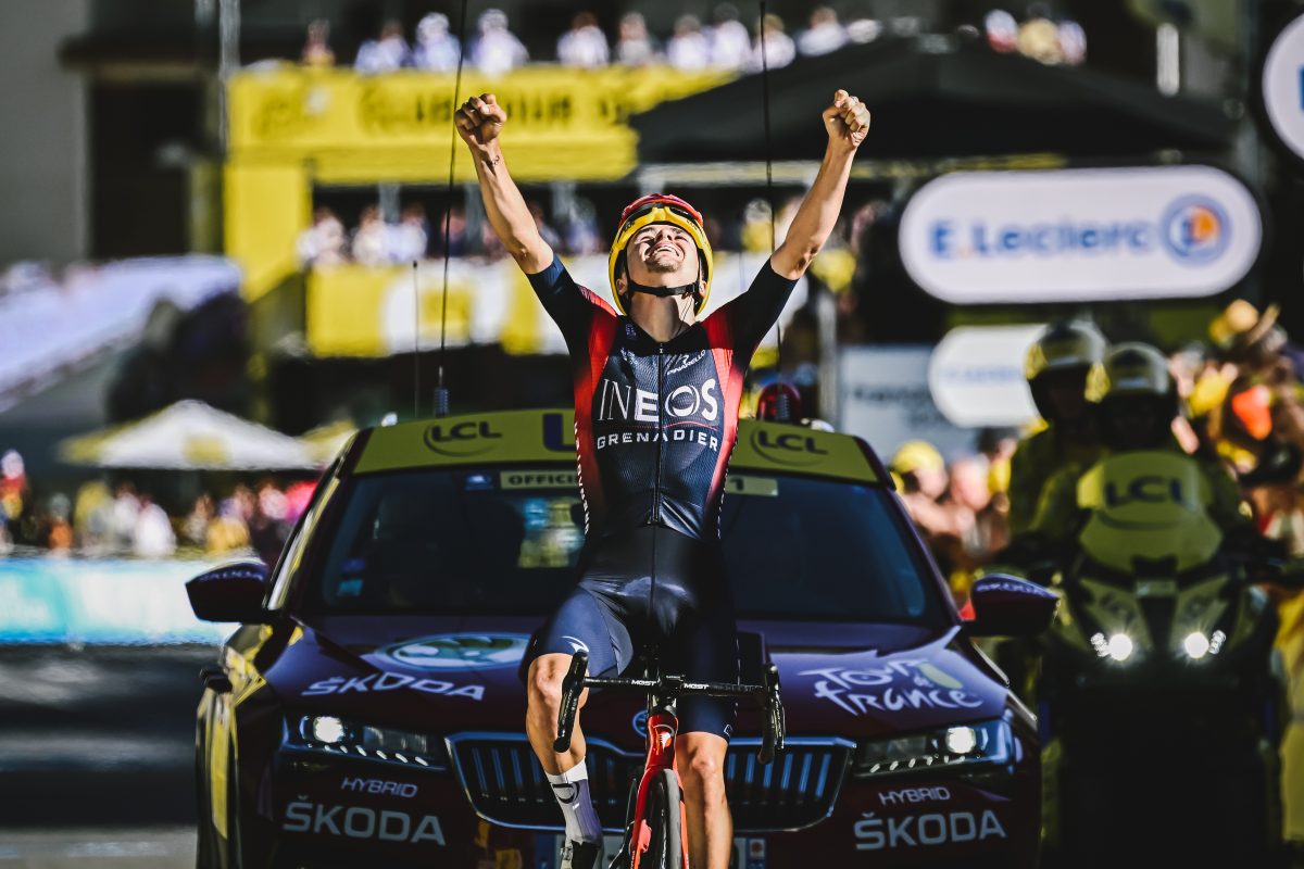 アルプ・デュエズの頂上にひとりで到達したピドコックは、両手を高々と掲げて喜びのフィニッシュ。ジュニア時代からあらゆるタイトルを手にし、マウンテンバイク・クロスカントリー種目では、昨年の東京五輪で金メダル。シクロクロスでは今年の世界選手権を制し、“スーパーマンスタイル”でのウイニングセレブレーションが大きな話題となった。オフロードと並行して取り組むロードレースでも高い評価を得ていたが、ついに最高峰のレースでの勝利をつかんだ。22歳と157日でのステージ優勝は、史上5番目の若さだった。
