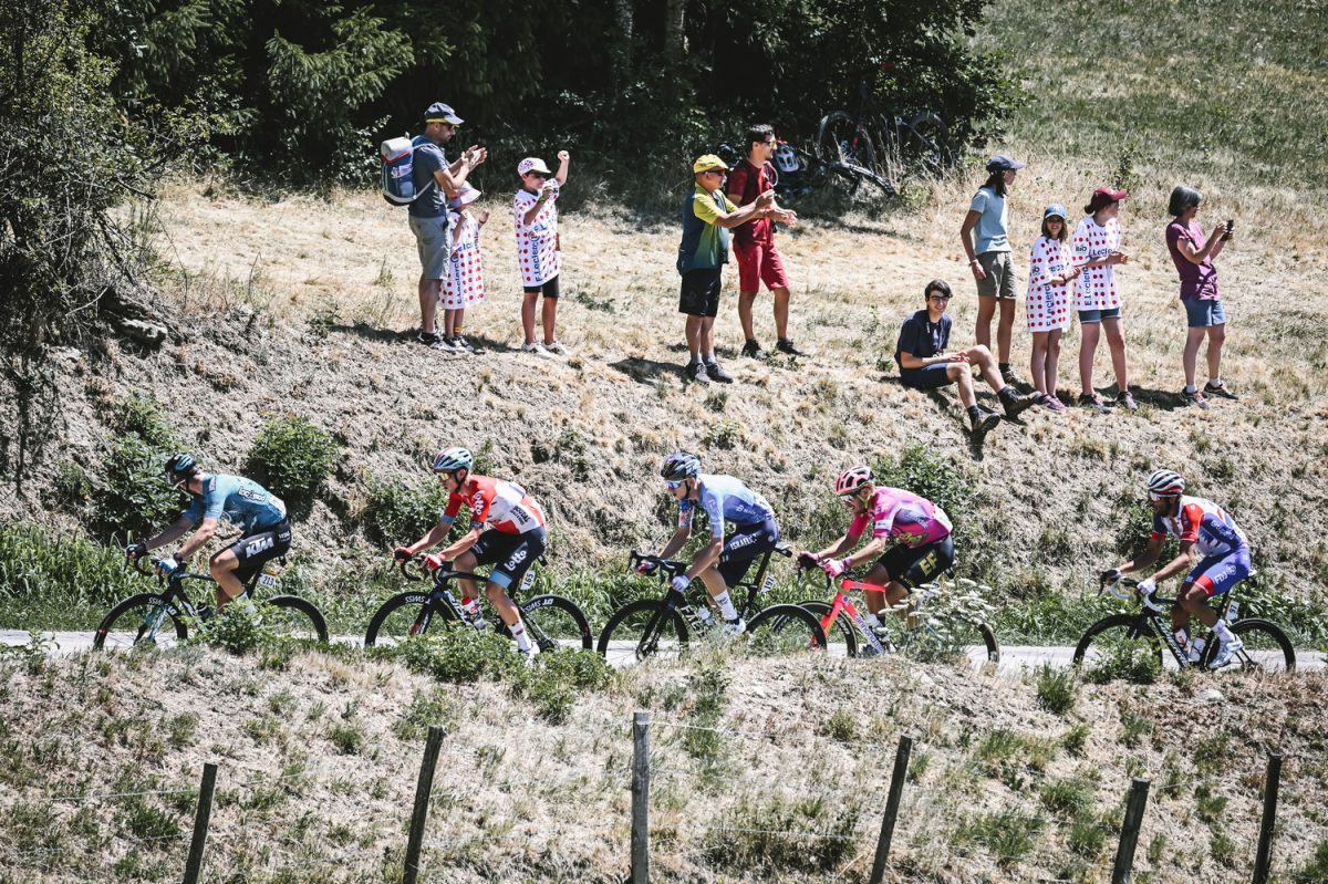 ツール第2週は残り2ステージ。翌週に控えるピレネー決戦へ向けて、着々とフランスの地を西へと進んでいる。第14ステージは、前日のフィニッシュ地でもあったサンテティエンヌを出発し、マンドまでの192.5km。終始アップダウンの連続となるコースセッティングで、合計5カ所の山岳ポイント以外にも無印の上りが待っている。とりわけ、マンドの街に入ってからやってくる2級山岳モンテ・ド・ラ・クロワ・ヌーヴは、登坂距離3kmながら平均勾配10.2%。最大16%の激坂をこなしたのち、1.5km走ってマンド・ブルヌー飛行場の滑走路にフィニッシュする。なお、この激坂は1995年大会登場時に勝利したローラン・ジャラベールにちなんで、“モンテ・ジャラベール”の異名を持つ。