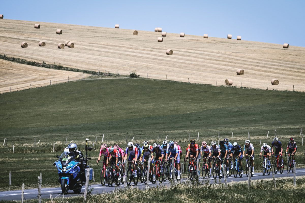 14.2km地点に置かれた3級山岳に向かってレーススピードが上がったことにより、後方に取り残される選手もちらほら。プリモシュ・ログリッチ(ユンボ・ヴィスマ、スロベニア)も集団復帰を目指す一員となっていた。メイン集団の人数が60人ほどまで絞られていたが、40km地点を過ぎて逃げの動きが固まってくるとレース全体が落ち着き始めて、やがて後ろに残っていた選手たちも集団復帰した。