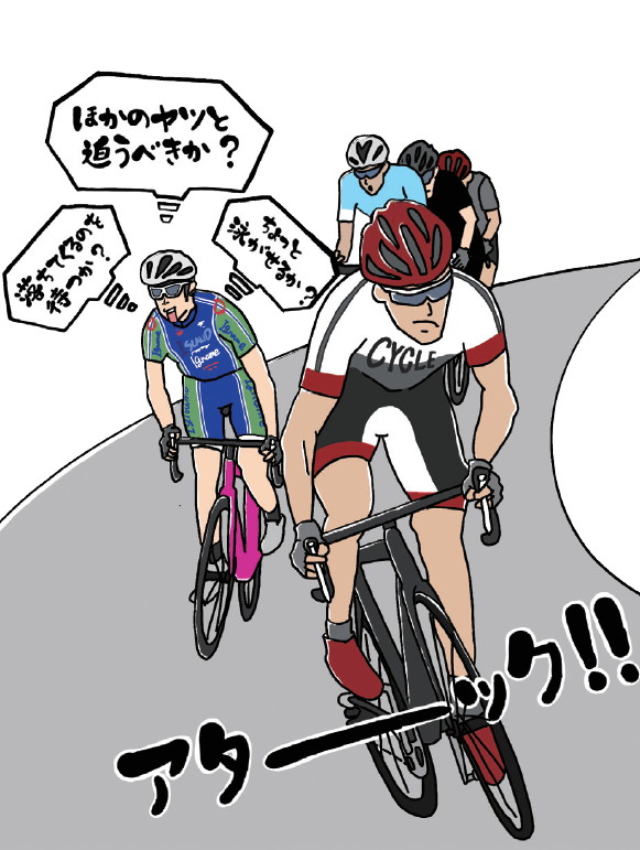 あと大切なのは「独走に持ち込んだら、そのときは後ろを振り向かない」ことだ。後ろから見たライバルに、「キツイんだろうな」と思われる。どうしても後ろを見たければつづら折りのカーブを利用してチラッと見たほうがいい。