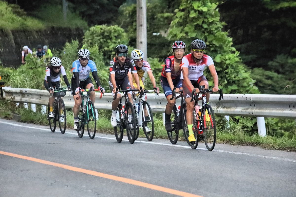 道の駅どうしを抜けるといよいよ今回のルート上の最高地点山伏峠へ向かう。暑いなか無理をせず個々のペースで上っていく。今回、現役ライダーは宇都宮ブリッツェンからは増田選手のほか堀 孝之選手、チーム右京相模原からは小石悠馬選手、宇賀隆貴選手、レバンテフジ静岡からは海野晋作選手、村山浩司選手が参加。ほかの参加者が汗をかきながら苦しむなか涼しい顔をして上っていた。