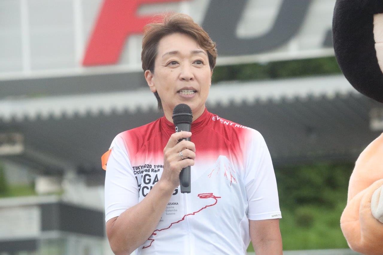 「昨年の東京大会では開催されるかどうか心配をおかけしましたが、みなさんのお力があってこそゴールを迎えました。世界に向けて発信することができたロードサイクリング、自転車コース。これは観光資源であり、健康寿命延伸ですとか、共生社会、可能性と調和といった東京大会のテーマにふさわしいものです。このロードコースをかわいがっていただく、育てていただくそういったものにしていただかないといけないと思いました。私、言い出しっぺなんですけれども、片山右京さんにお願いしまして、白戸太朗先生はじめみなさまの協力をいただきまして今日は一都三県を走らせていただきました。本当に素晴らしいコースだと思っております。これからインバウンドのみなさまに、あの東京大会のロードコースを走りたいと整備もしっかりとしていかないと思います」