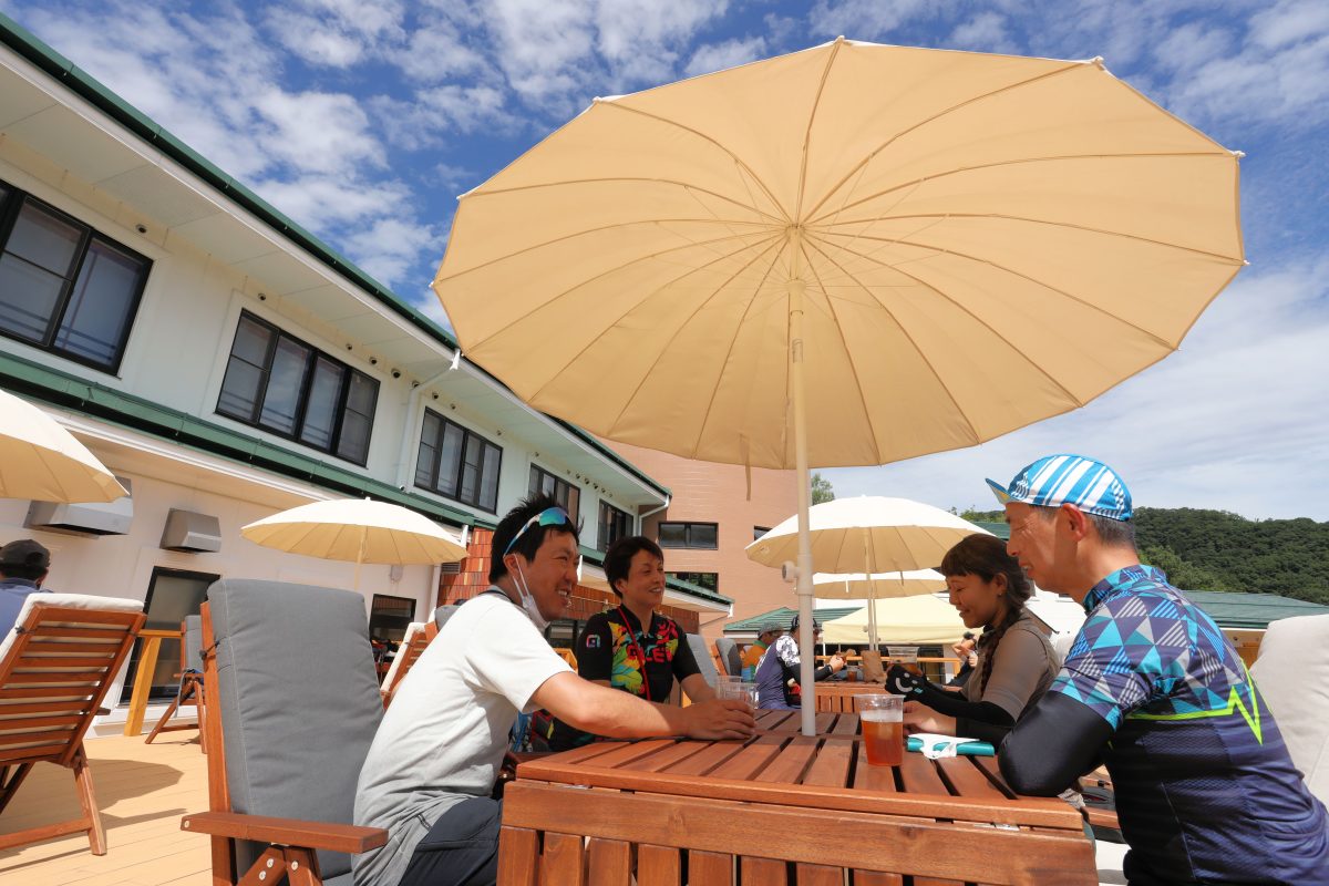 御嶽山からフィニッシュ地点までは約40km。御嶽山を下り、長峰峠を上り返せばあとは下りっぱなしだ。途中、木曽温泉黄金の湯で最後の休憩をしたらあとはひたすら下り、御嶽山を望む高原の風景を楽しみながら日野百草本舗 王滝店を目指した。
