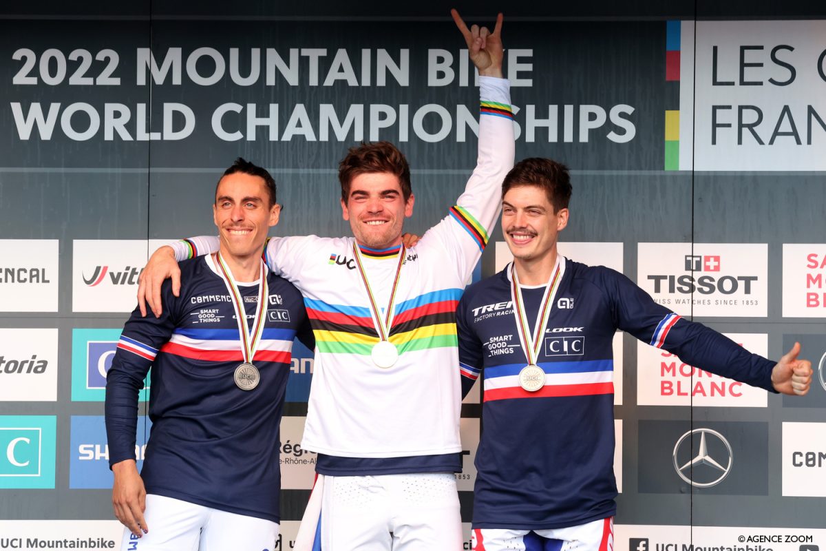 MTB世界選手権ダウンヒル、フランスが表彰台を独占! 九島勇気は59位で一時ホットシートに