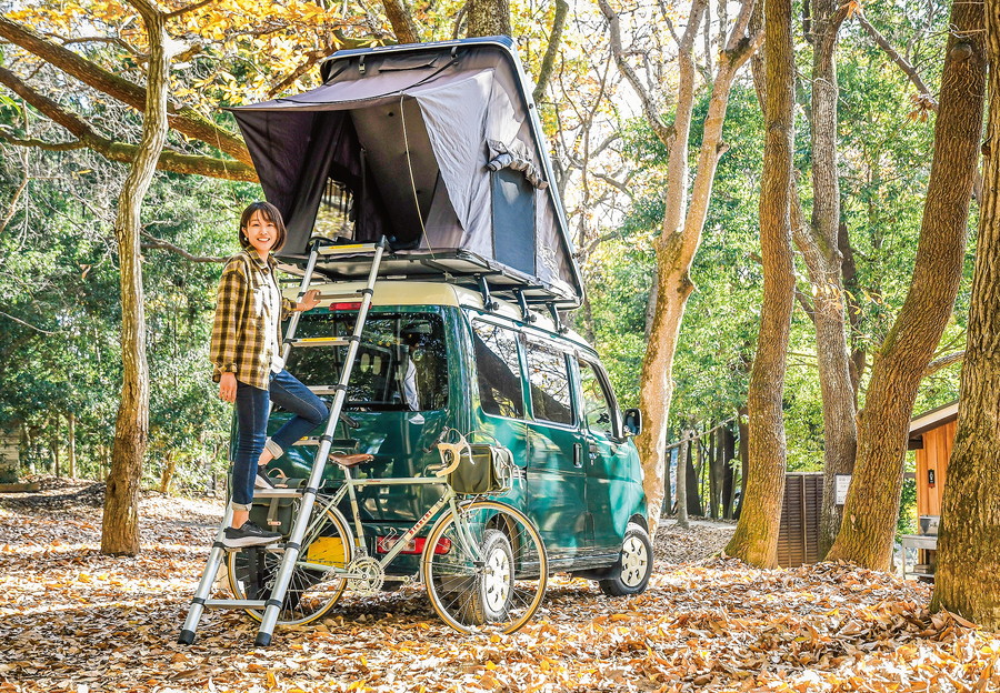 秋冬はたき火やダッチオーブン料理もしたい。ルーフテントをつけるので自転車や好きなアイテムを積み、昼はキャンプ場の近くのパン屋さんなどへゆるポタをする。