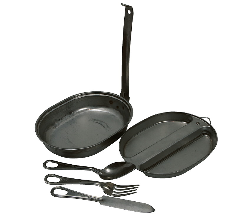 キャンプで一度は使ってみたい定番。アメリカ軍放出品のメスキットパン。カトラリー付き