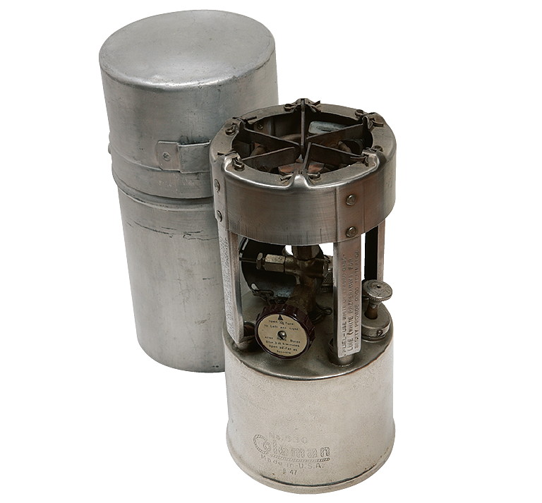 75年前のコールマン530GI ポケットストーブ。野趣あふれるバーナーで湯を沸かすぜいたく
