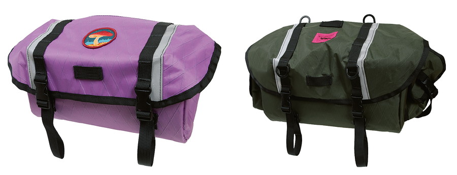 大人気のスイフトインダストリーズのバッグ。左は2021年のキャンプアウトの限定品。右はこちらも品薄なザイトガイストサドルバッグ