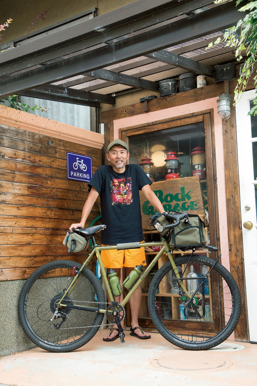 近年流行りのグラベルなエッセンスも効いたハイセンスな一台。通な自転車キャンパーのお手本としたいものだ。