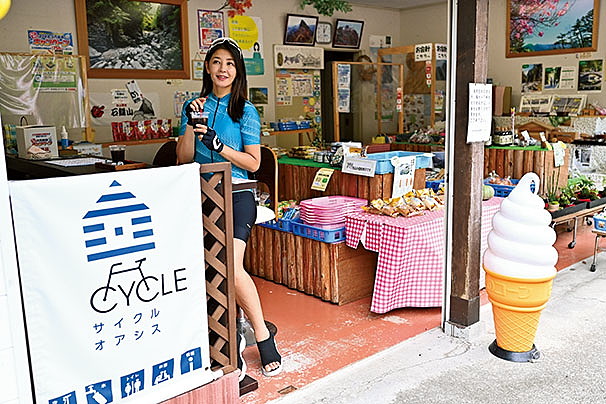 都市と農村の交流拠点となっている「おもごふるさとの駅」。石鎚山ヒルクライムではスタート会場となっている。特に週末は地元ならではのさまざまな味覚が楽しめる。アマゴの塩焼きはあれば即買い必至だ。