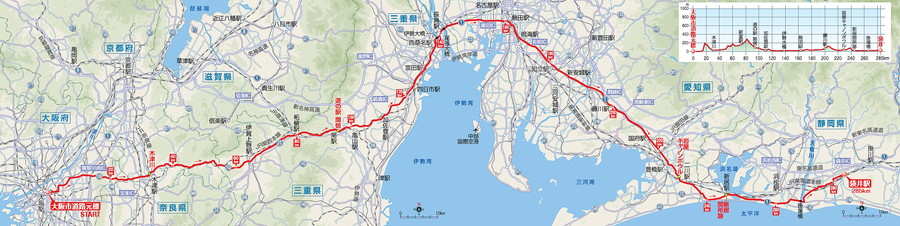三重県から愛知県へ木曾三川を越えるところで地元の伊藤勝巳さんが待っていてくれた。コースのほとんどは追い風だったが、唯一鈴鹿から桑名まではやや向かい風でちょっと疲れていたところで元気をいただいた。