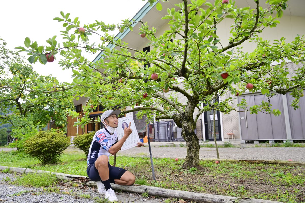 みなかみフルーツランド モギトーレには、リンゴが落ちて重力を発見したニュートンのリンゴの木の子孫が植えてあった。