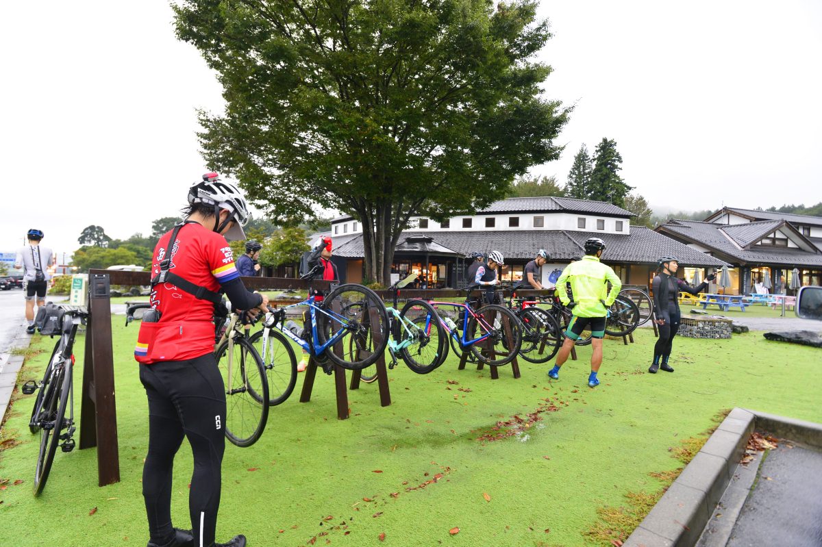 イベントの参加者はたくさんいるかと思いきや、主催者が選考したのは10人ほど。エベレスティングなどヒルクライムレースの結果を元に選ばれし者が群馬県利根沼田の「道の駅 川場田園プラザ」に集まった。