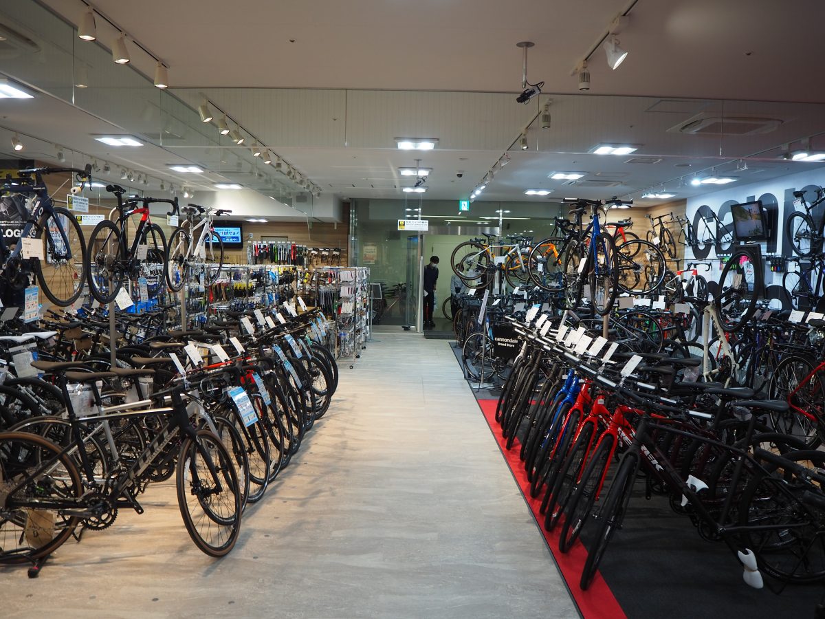 新橋駅から歩いてすぐ。その店舗の面積は合計233.8坪と非常に広く、世界各国のさまざまな自転車が並ぶ店内。とくに専門コーナーを設けているブランドはピナレロ、ビアンキ、トレック、キャノンデール、またベスビーやマヴィックなども充実。さらにその広がりは実店舗だけでなく、オンライン上にもつながっている。