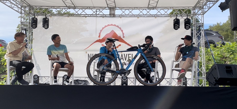 パナレーサー・三上勇輝さん、キャノンデール・カズ(山本和弘)さん、シマノ・鞍谷融紀さんも一緒に登壇し、自転車業界の中でどうグラベル機材が進化していってるか等、話が弾みました!